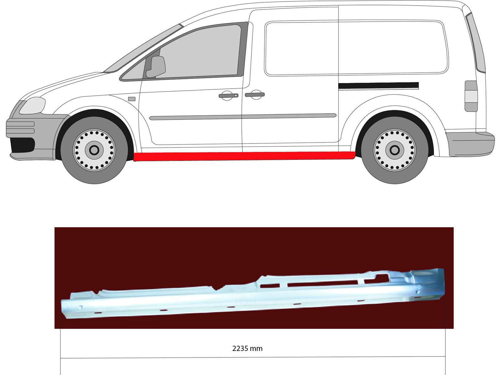 Dørpanel, Køretøjsudstyrsserie/-variant: Maxi, 4-drs, venstre, Reparationsplade, Akselafstand [mm]: 3000