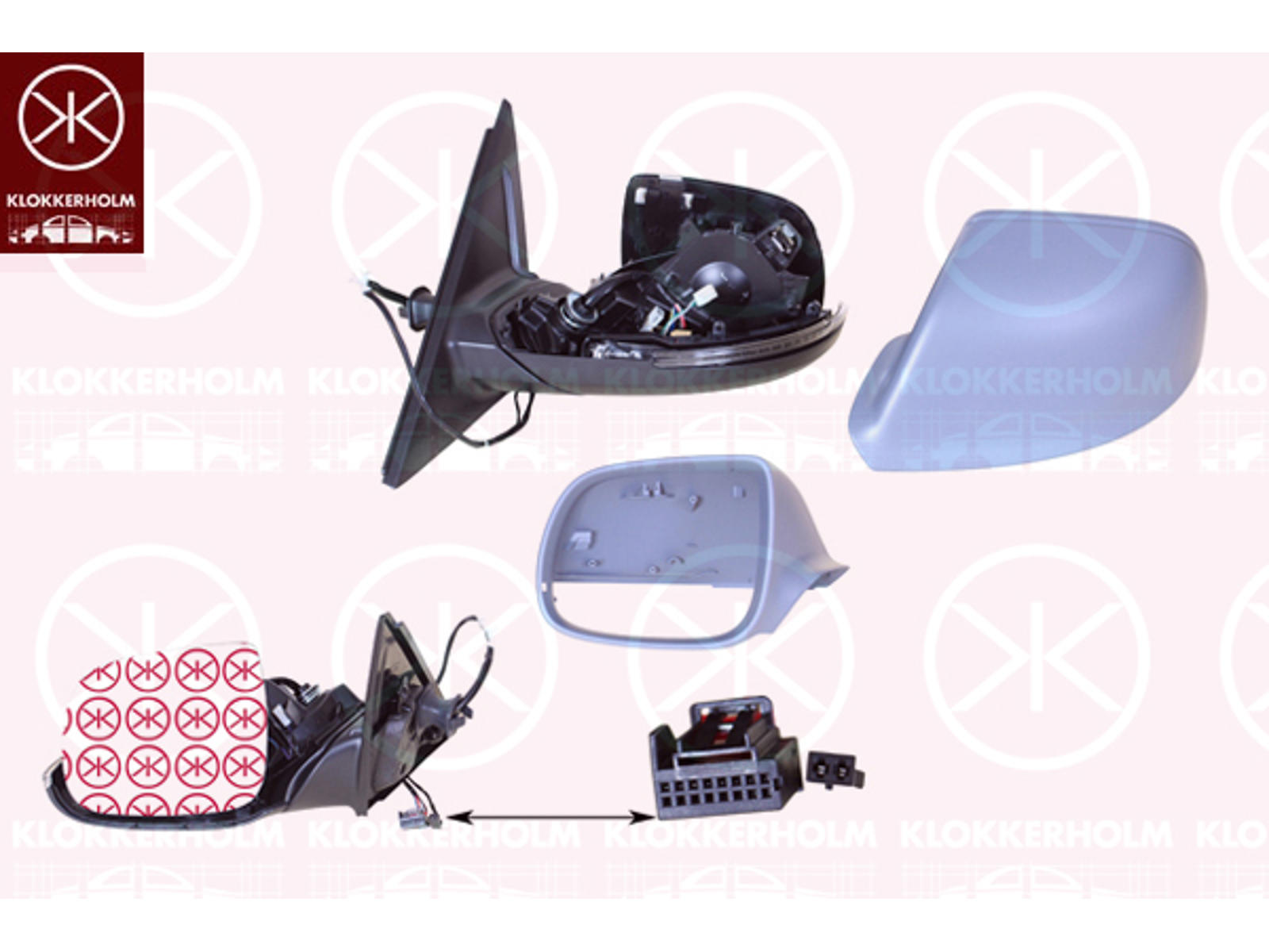 Exterior Mirror, Left, for electric mirror adjustment, Number of pins: 8, with indicator, Heatable, w/primer, Aspherical, Complete Mirror