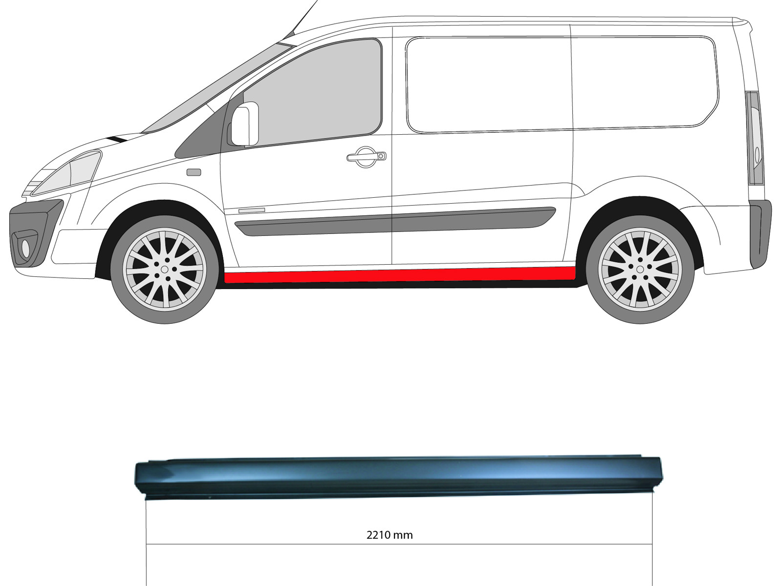 Rocker Panel, Left, for vehicles with sliding door, Repair Panel, Length [cm]: 221