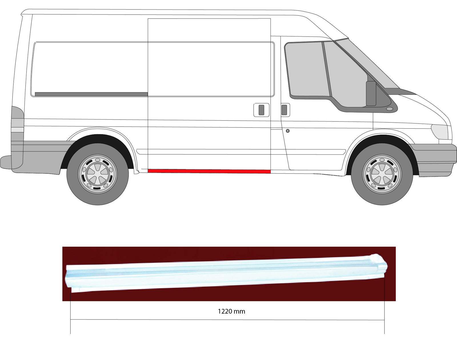 Quarter Panel, Right, for vehicles with sliding door, Lateral Panel, Lower Section, Length [cm]: 122, Height [cm]: 10