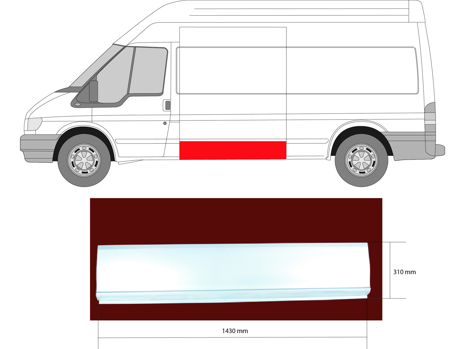 Quarter Panel, Left, for vehicles without sliding door, Lateral Panel, Length [cm]: 143, Height [cm]: 31