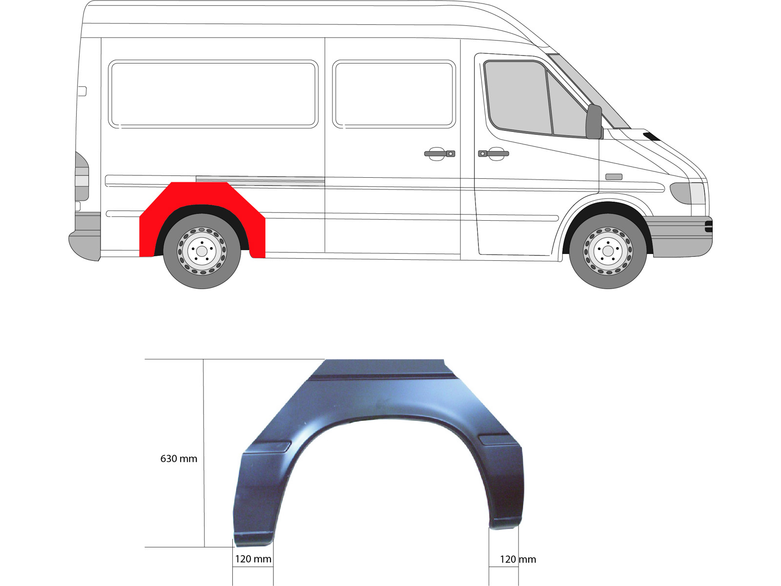 Quarter Panel, with single tyres, Wheel Arch Border, Outer section, Repair Panel, both sides, Length [cm]: 107