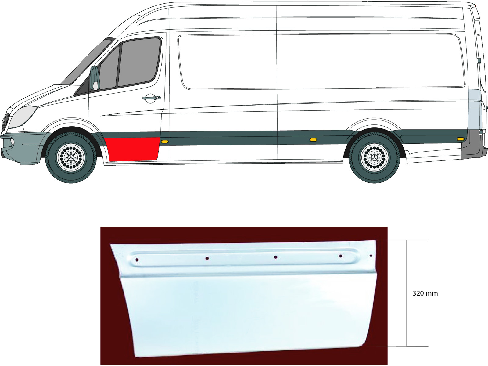 Tür, Karosserie, vorne rechts, Reparaturblech, unterer Teil