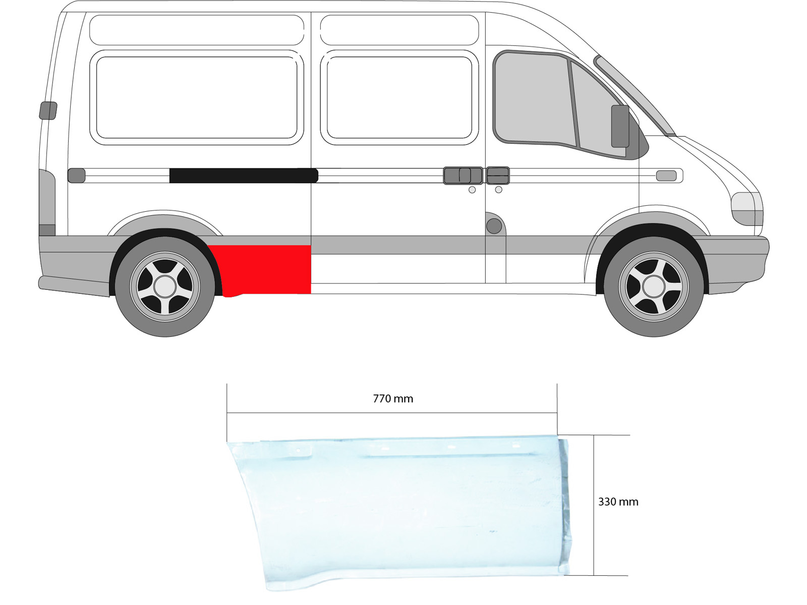 Quarter Panel, Side Panel, Repair Panel, Right Front, Length [cm]: 77, Axle Distance [mm]: 3600