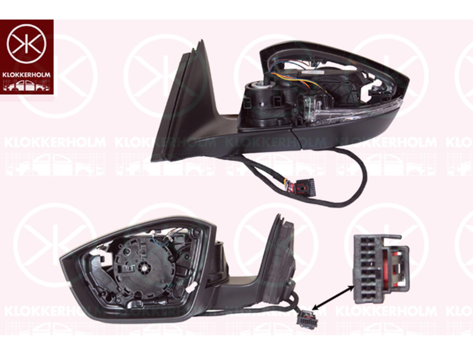 Наружное зеркало, слева, без зеркального стекла, подготовлено к автоматическому переключению на ближний свет, электрически захлопывающаяся, с памятью, Количество втычных контактов: 15, с мигающим огнем, с лампой для чтения