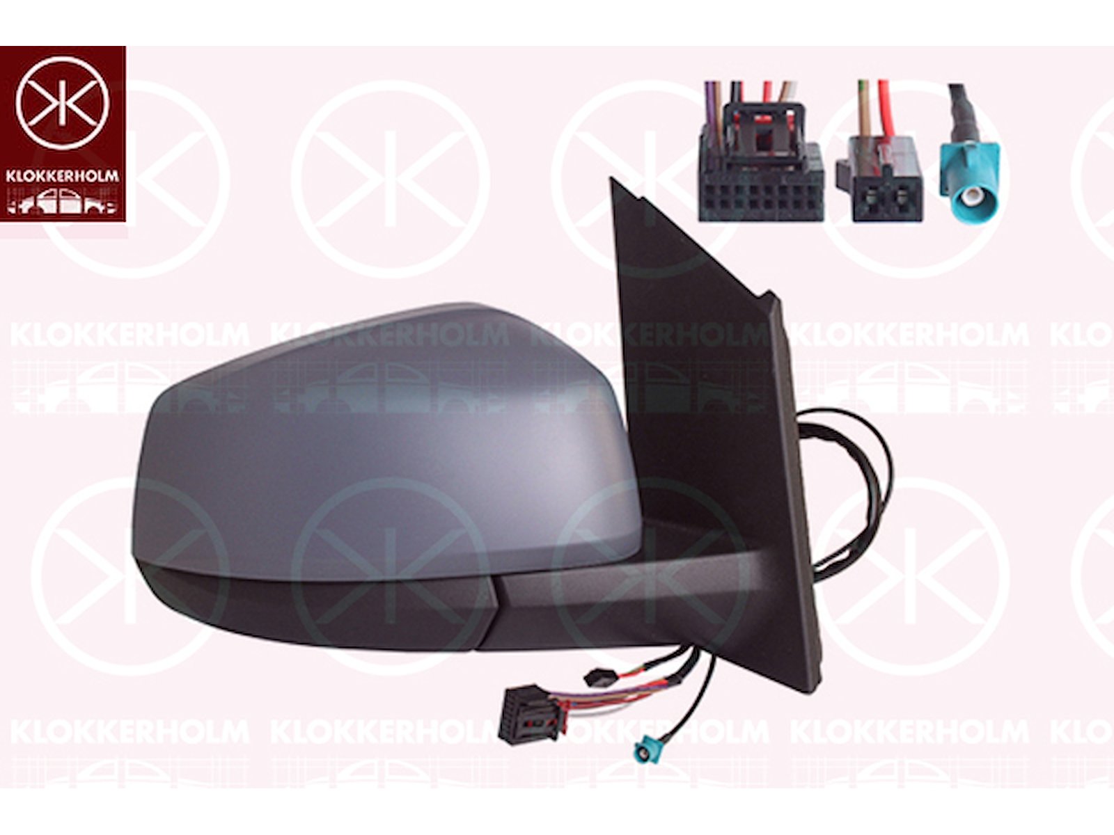 Exterior Mirror, Right, Heatable blind spot mirror, Electronically foldable, Number of pins: 7, Number of pins: 2, with aerial, Vehicle Equipment Line/Variant: FM2, Heatable, Convex, w/primer