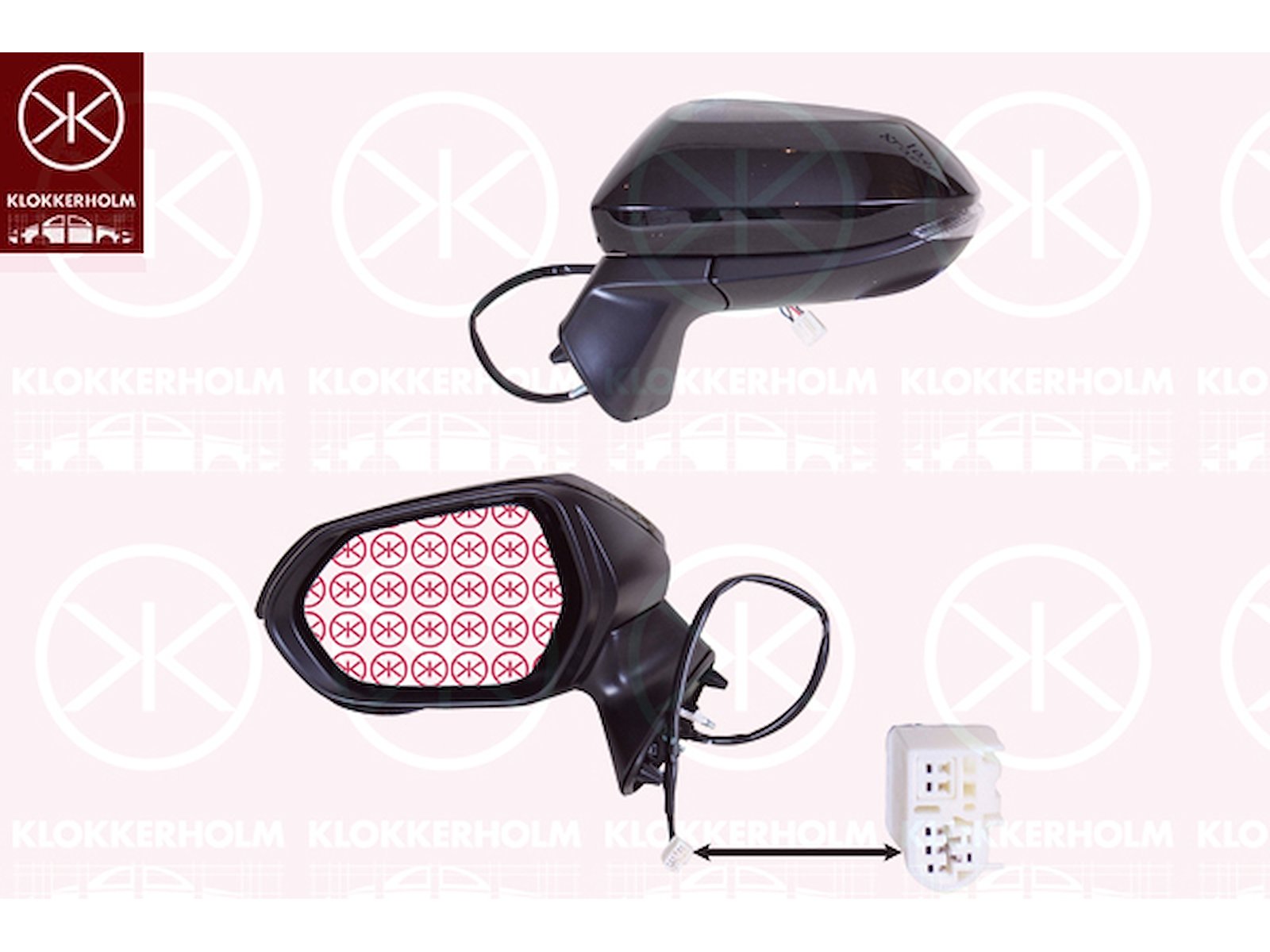 Utv.spegel, Vänster, för el. spegelinställning, LED, med blinkljus, uppvärmbar, konvex, m/grundlack, Antal stickkontakter: 6